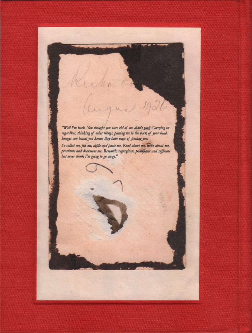 “Well I’m back. You thought you were rid of me didn’t you? Carrying on regardless, thinking of other things, putting me to the back of your head. Images can haunt you know: they have ways of finding you. So collect me, file me, defile and paste me. Read about me, write about me, prostitute and document me. Research, regurgitate, pontificate and suffocate but never think I’m going to go away.”